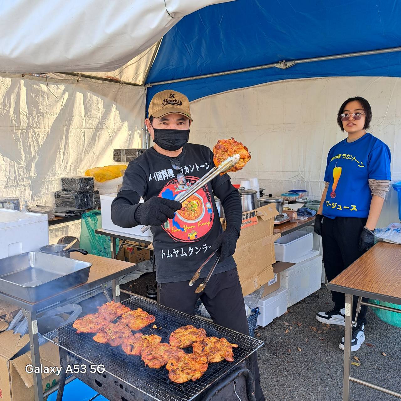タイ人シェフが炭火でじっくりと焼き上げる鶏肉は、外はパリッと香ばしく、中はジューシーで柔らかく仕上がります。揚げ鶏もサクッとした食感とジューシーな味わいが楽しめます。