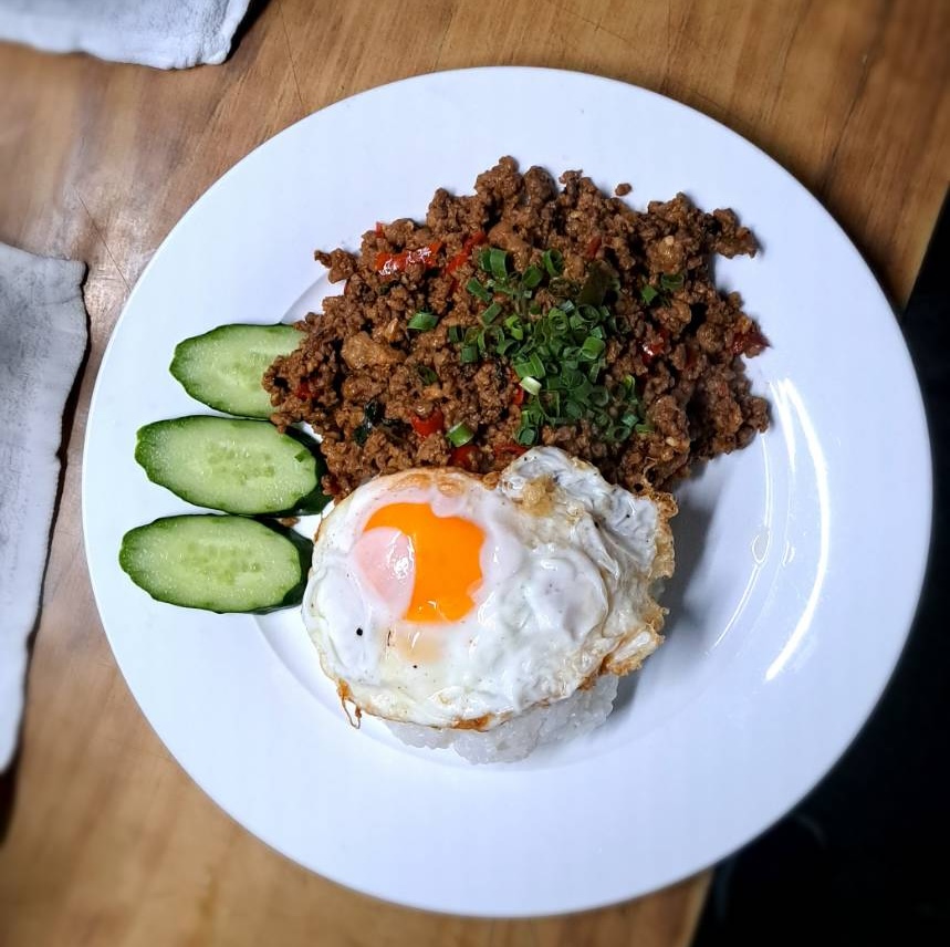 豚ひき肉のバジル炒め(ライス・目玉焼き付き)