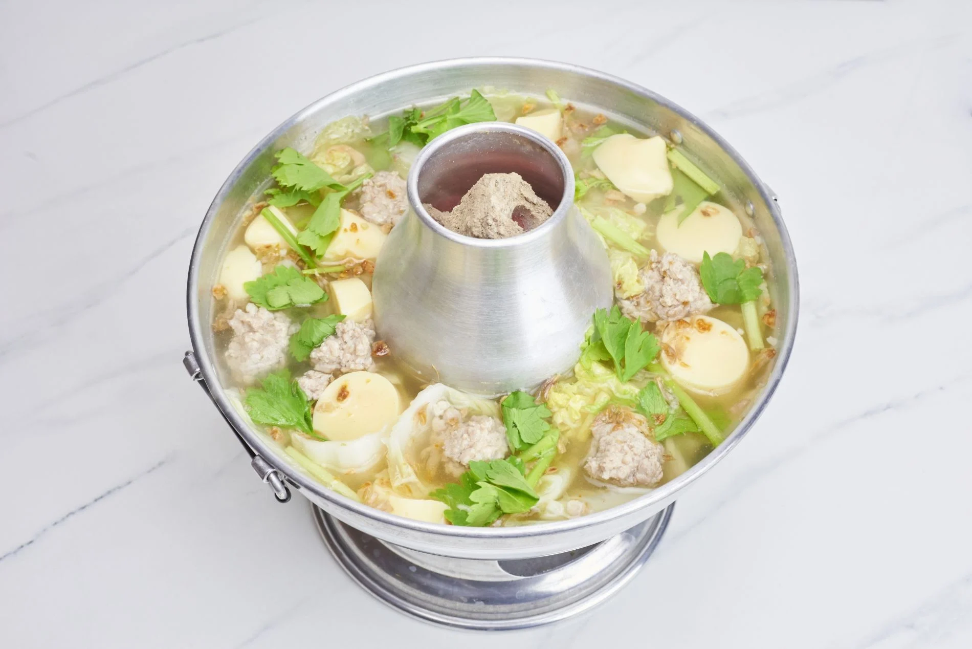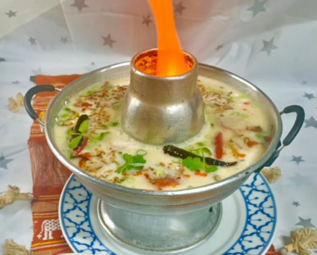 鶏肉のココナッツミルクスープ。ガランガル(タイ生姜)の風味が特徴のまろやかスープ火鍋