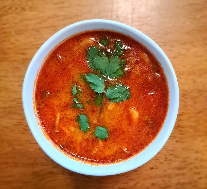 エビのトムヤムクンスープ。レモングラス・こぶみかんの葉・唐辛子の香りが食欲をそそる本格タイ味 ※Lサイズ ¥2,250